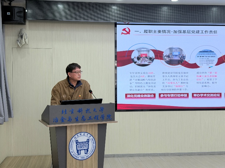 述职评议采取现场述职与书面述职相结合的方式进行。会上,教职工党支部书记、部分学生党支部书记依次进行现场述职,重点围绕五个方面进行汇报:一是深入学习贯彻习近平新时代中国特色社会主义思想情况;二是增强基层党组织政治功能和组织功能情况;三是落实基层党建重点任务情况;四是加强党员队伍建设情况;五是履行管党治党责任情况。述职中,各位书记全面总结了过去一年抓基层党建工作的做法成效,深刻剖析了存在的问题和不足,并提出了下一