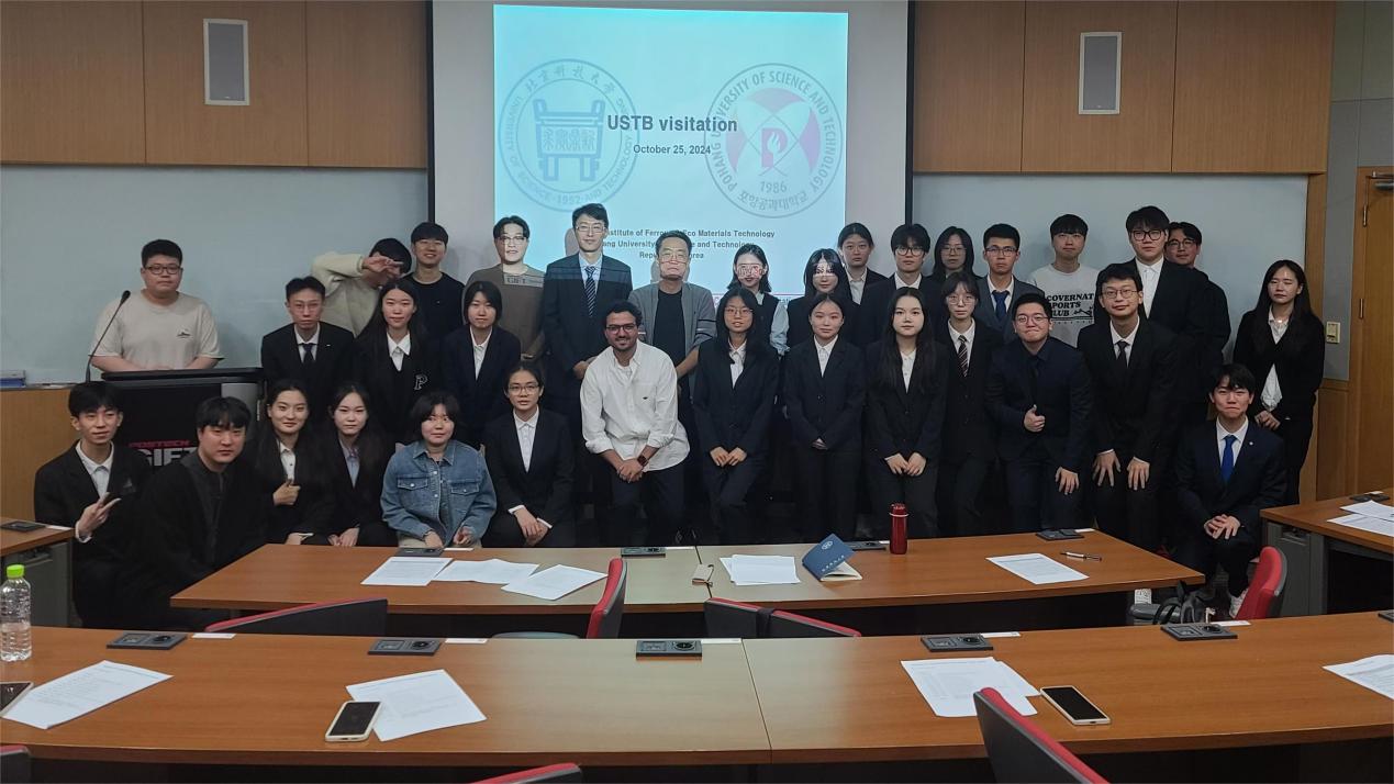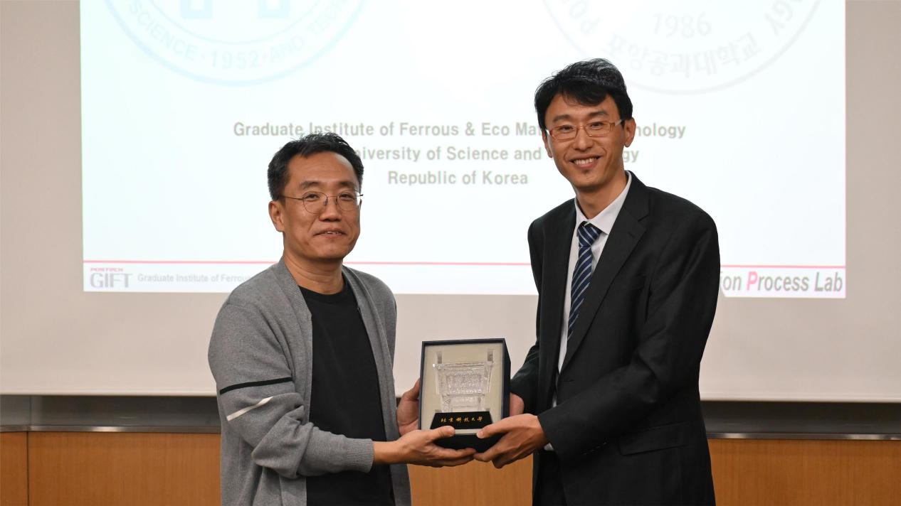 在25日上午的交流环节中,兰鹏表示,北京科技大学与浦项科技大学渊源深厚,学校和学院有多名教师曾在此学习深造,同时重点介绍了冶金、储能学科的人才培养、办学理念、学科优势及科研发展。