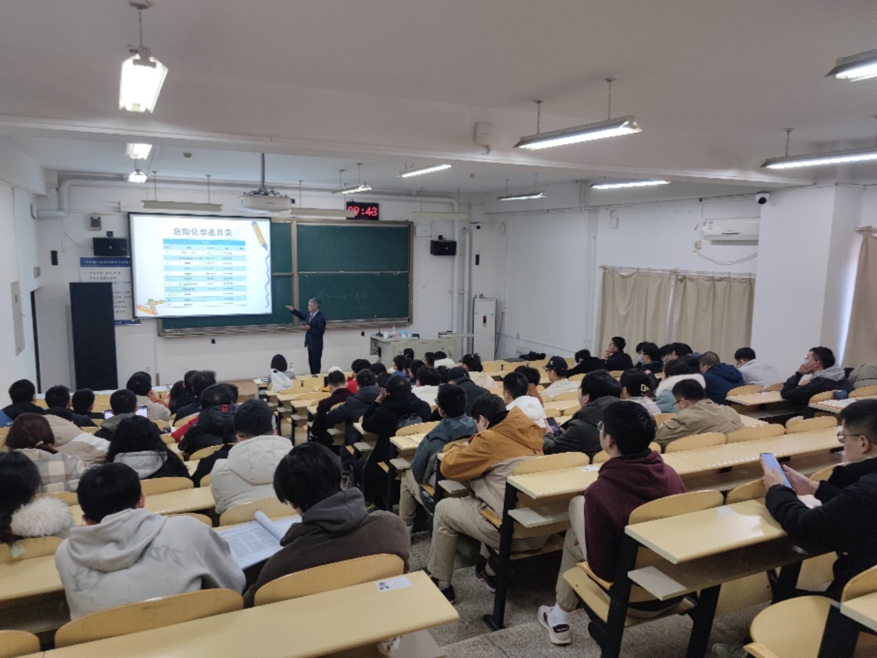 贾老师从危险化学品和气瓶的分类、储存要求、使用要点、危害警示等方面为师生进行了详细的讲解,结合自己的专业领域及作为实验室安全督导的经验,主题鲜明,重点突出,既摆事实、又讲道理,具有很强的指导性和针对性。