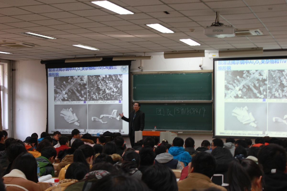 最后,张立峰院长为同学们介绍了中国钢铁的市场前景,并以国际视野分析了美国钢铁,欧洲钢铁,亚洲钢铁的形势,并明确指出我国冶金行业人才济济,科研条件不断提升是我国钢铁工业越来越强盛的根本原因,树立了同学们对于中国钢铁产业的信心和自豪感,为同学们的未来发展之路进一步明确了方向。