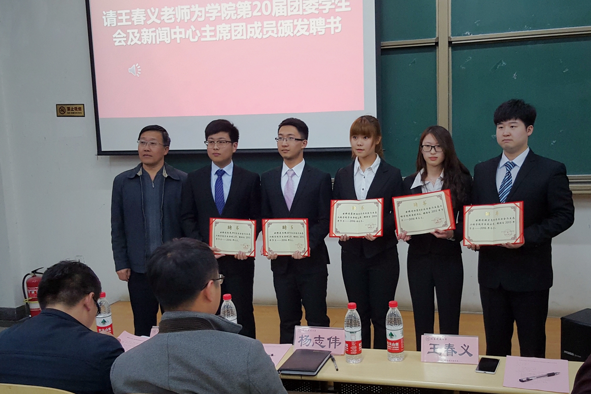 团委书记杨志伟老师,辅导员陈曦老师、郝勇飞老师参加聘任大会并向学院团委学生会及德州游戏部长骨干颁发聘书。