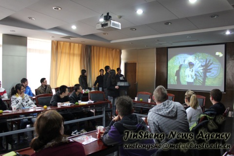 为来访的德国学生放映了学院今年“春之声”文艺晚会的视频片段,既活跃了现场的气氛,也让德国学生对于中国青年的课余生活有了更深的了解。随后一段北京科技大学英文官方介绍,也让德国学生清晰地了解到我校的特色。而随后他们也通过视频短片和幻灯片展示,给我们学院的学生展现了一个美丽、自然、将科技与人文紧密结合在一起的校园。