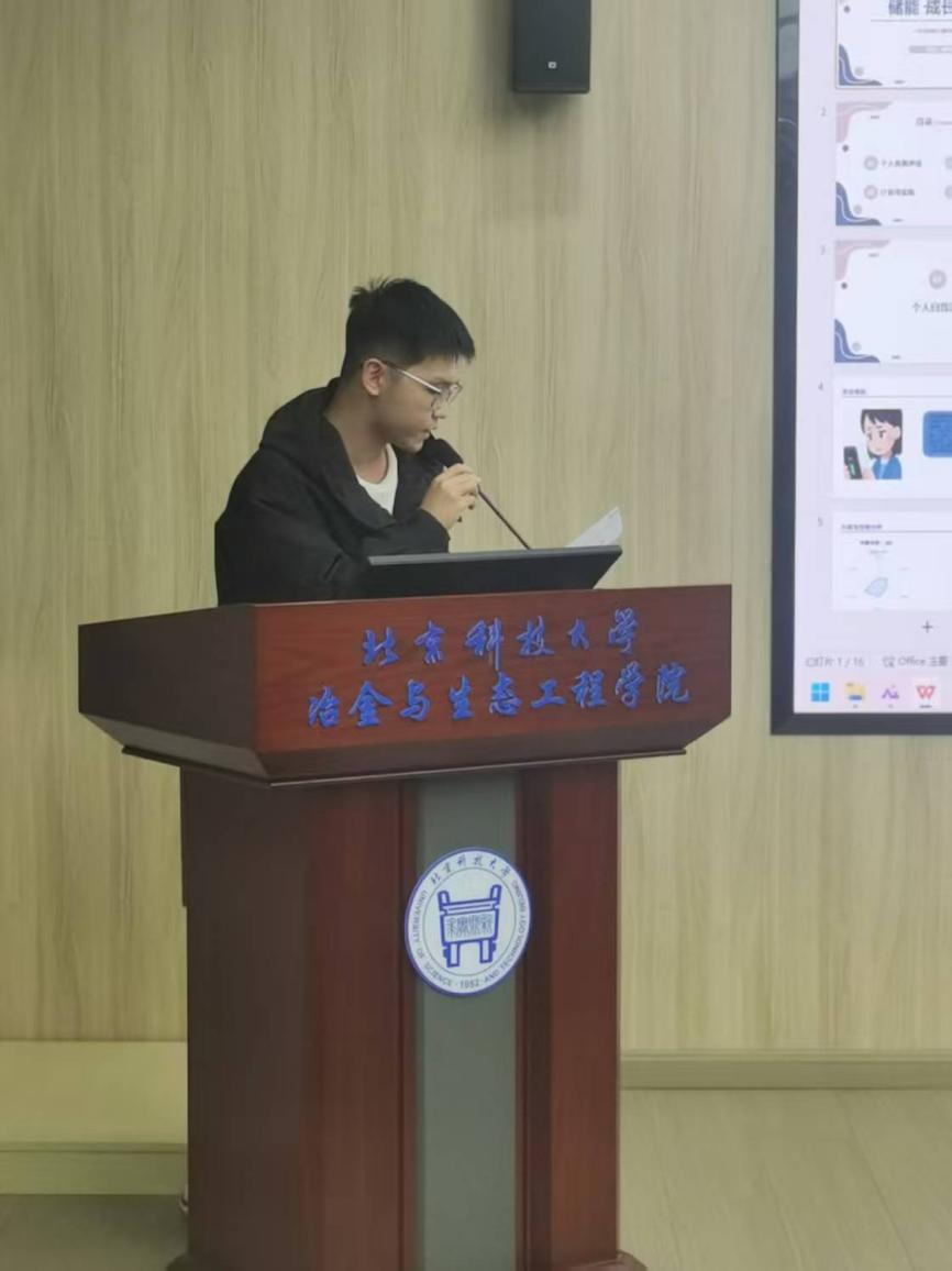 张旸堃作为24届市赛获奖选手做出发言。首先,他分享自己去年的获奖经验,他认为专业演讲要有专业性,规范性;其次,他总结了几位参赛选手的宣讲情况,希望各位选手总结经验,继续进步;最后,他从学科优势展开,提到冶金专业连续六年世界第一,提出大家应该要树立专业自信,练就过硬专业技能,这样才能在未来求职过程中有所收获,在工作领域有所作为。