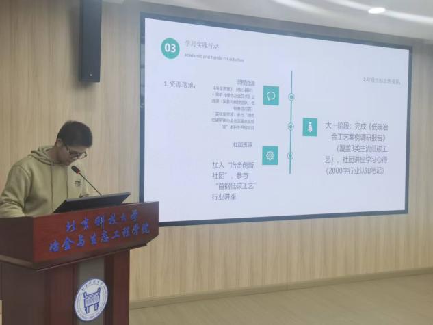 各位选手齐聚一堂,他们精心准备,用生动有趣的语言和丰富多样的形式,向在场的评委老师展示了各自专业的魅力和特色。选手们围绕“自我认知、职业环境分析、职业目标设定、评估与调整”等环节,进行了精彩纷呈的个人展示。他们的职业规划路径多元而清晰,充分展现了新时代冶金学子的远见与担当。