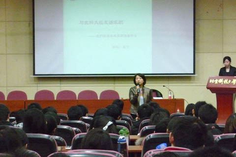 北京科技大学2011年度大学生职业生涯规划与发展辅导月已于3月15日正式启动。作为系列活动之一的“名企校友谈”由招生就业处与各学院共同举办,3月19日15:30,现任职于中国中钢集团公司人力资源部、德州游戏 2006届研究生毕业生张飞作为首讲嘉宾,在镭钼报告厅与广大的学弟学妹们进行了面对面的交流,招生就业处副处长尹兆华老师出席并发表讲话。