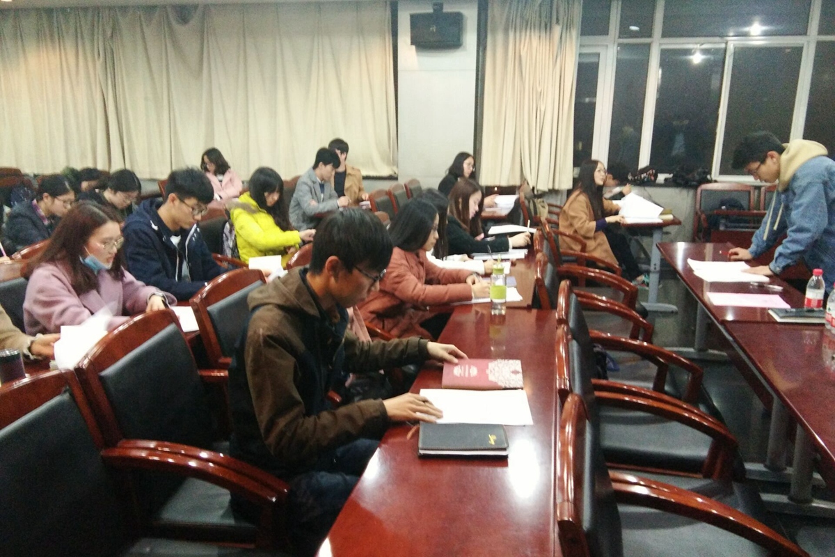 会议伊始,周昊同学向各班团支部书讲解说明了本次主题班团日活动的内容和形式。他希望各班团支部书记对于本次班团日活动高度重视,加强统筹,切实将主题班团日活动作为对同学们日常生活思想引领的重要载体;形式创新,务求实效,注重发挥班级团支部的创新意识;强化指导,长效推进,加强对主题班团日活动的过程指导,总结凝练好的做法和好经验;统计成果,及时报送,严格信息审核,保证成果报送的数量和质量,同时要确保成果内容的正确性、全面性、文字表达的准确性、凝练性。
