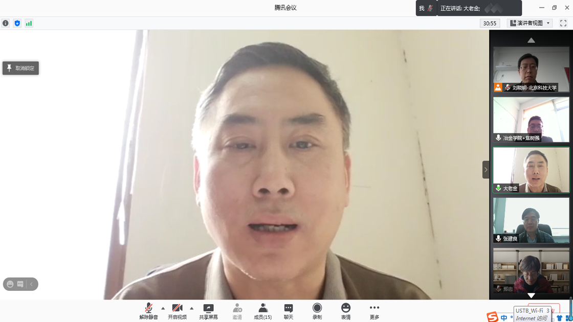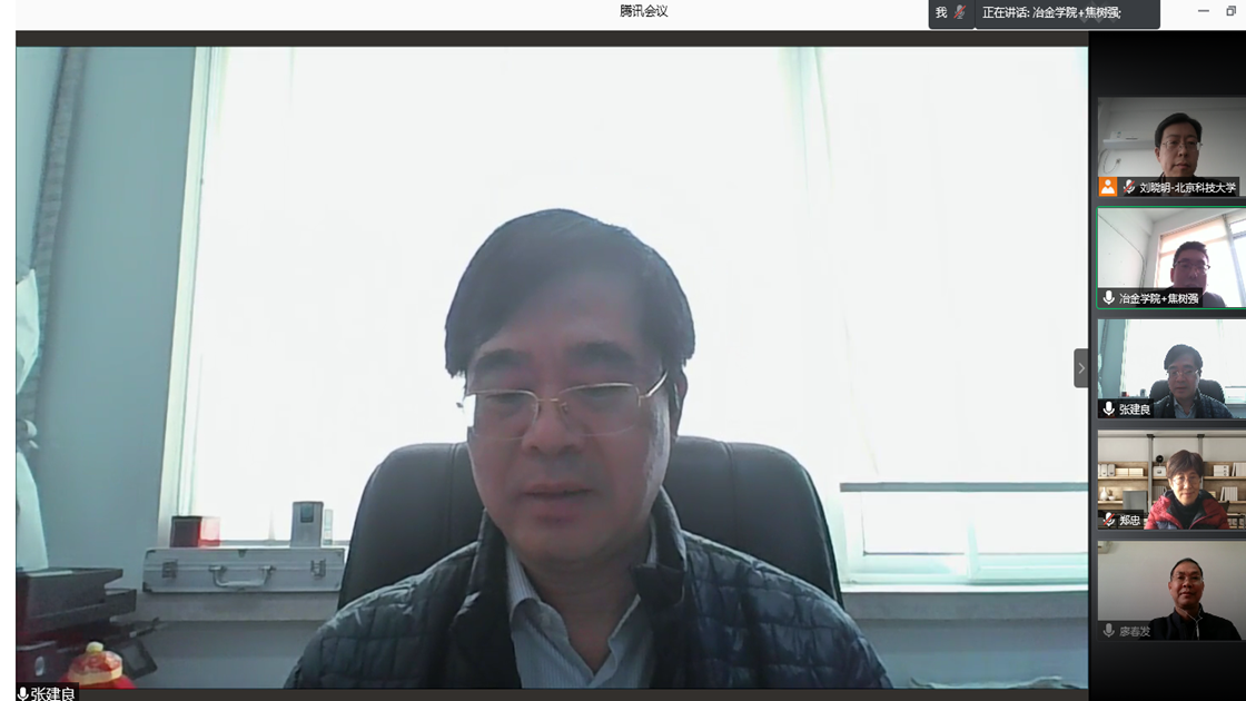 北京科技大学冶金工程国家级实验教学示范中心2020年教学指导委员会年度会议于2021年3月4日14:00-16:00召开,根据疫情防控要求,本次会议通过腾讯会议进行。出席本次会议的有冶金工程教学示范中心教学指导委员会廖春发教授(江西理工大学 主任委员)、郑忠教授(中南大学 委员)、杨建广教授(中南大学 委员)、杜涛(东北大学 委员)、吴胜利教授(北京科技大学 委员),北京科技大学资产管理处金仁东处长、徐宁科长、乔瑞鑫老师,德州游戏 党委书记张建良教授、院长焦树强教授、示范中心主任刘晓明教授及示范中心代表5人。会议由德州游戏 院长焦树强教授主持。