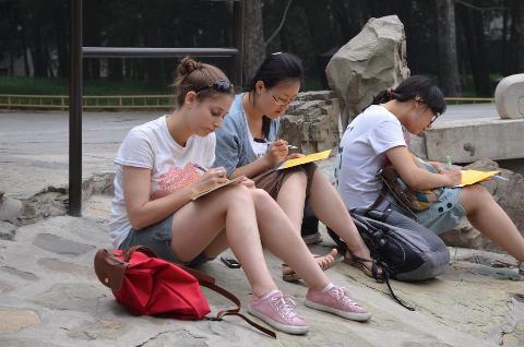 6月23日,师生们参观了颐和园,它体现了中国古代皇家园林营造的最高水平。夏令营特意安排了自由时间给大家写生,大家分别拿出自己的作品进行比较和评价,营员们一致认为Michael的作品是这次写生作品中最好的。