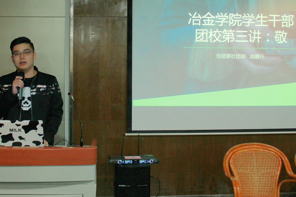 听过了前面的经历分享,校团委社团部副部长赵建行同学则以"敬"为话题,讲述了学生工作中注意的事项。尊敬上级,尊敬同级,尊敬下级,这不仅是最基本的礼仪,更是学生工作中与人相处的方式。对待上级要敬逊,保持谦逊有礼,从上级那里学习他们的长处。对待同级要敬信,设身处地地为他人考虑,让自己成为一个值得信赖的人。对待下级要敬事,认真对待工作,为下级做出楷模。