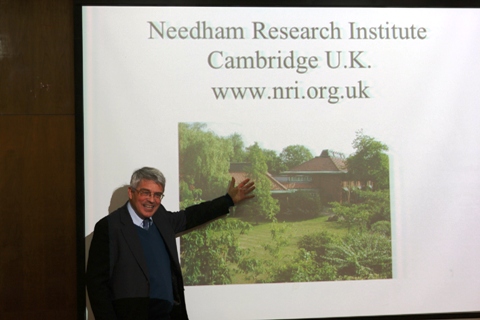 院长张立峰教授主持。张院长首先以大量图片向在座师生就“Needham Question”(李约瑟难题)和李约瑟其人做了简洁而精彩的介绍;接着,古克礼教授分四个部分展开了演讲。