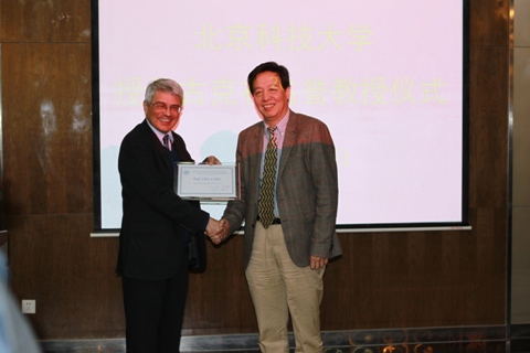 学术演讲前,学校国际合作与交流处处长王戈教授主持了“北京科技大学授予古克礼先生名誉教授仪式”。学校党委书记、科学技术与文明研究中心理事会理事长罗维东教授向古克礼先生颁发了名誉教授证书,并代表学校致辞,回顾了我校与李约瑟研究所的长期交流和友谊,并对古克礼教授为我校科技史学科建设所做出的贡献表示了衷心感谢。