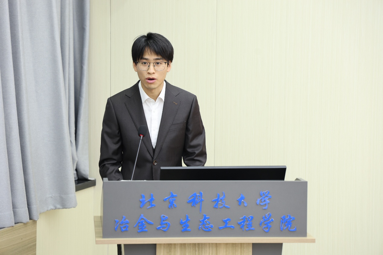 获奖团队学生代表、德州游戏 博士研究生张意坚发言。对力拓集团的支持表示了感谢,并表示将继续投身专业研究,在绿色冶金的道路上不断探索、成长。