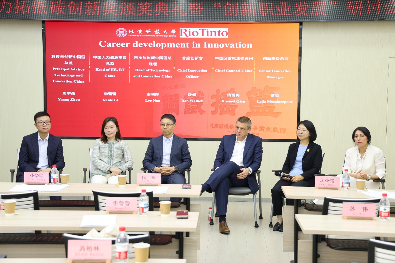 颁奖典礼后举行2025年“创新职业发展”研讨会。力拓集团参会嘉宾围绕在场学生提出的关于职业发展、行业未来需求、创新思维培养、科研成果落地、入职法律风险防范等多类型问题进行了细致解答和个人经验分享。