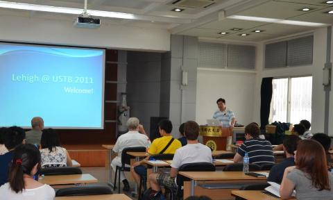 6月20日下午,“北京科技大学-美国理海大学夏令营”(Lehigh at USTB―Summer 2011)开营典礼在国际合作与交流处多功能厅隆重举行。国际处郭侃俊副处长,冶金与材料史研究所梅建军所长,我校科技史、生态学、工业设计各专业的师生及理海大学代表团成员共三十余人出席了典礼。
