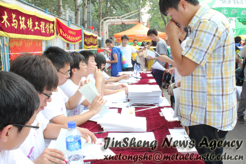 的迎新会场由外至内分为咨询处、家长休息区、本科生报到处、研究生报到处,处处体现着学院对新生的热情关怀。不必说会场上张贴的详尽的引导语,流水线报到的方便快捷;也不必说在场工作人员的耐心、周到的讲解;更不必说家长也一样受到志愿者们的“照顾”:搬凳子、答疑惑;仅仅看到工作人员脸上那些细密的汗珠就让人感动。在这个并不炎热的秋天,他们用自己的汗水迎来了北科新的希望,用自己的行动传承了德州游戏