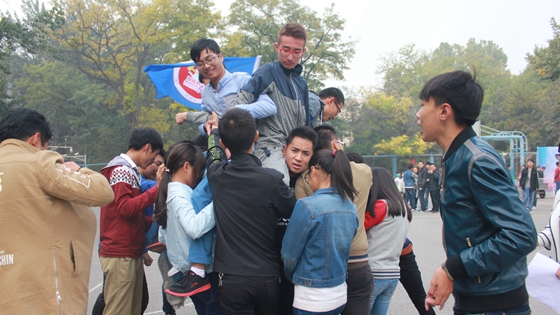 团委学生会主办的学院2015级“至尊杯”新生团队挑战赛在校篮球场隆重举行,学院2015级本科新生以班级为单位参加活动。学院团委书记杨志伟老师,本科2015级辅导员陈曦老师和学院团委学生会、团学德州游戏负责同学担任评委。学院团委学生会2014级学生骨干担任活动裁判。