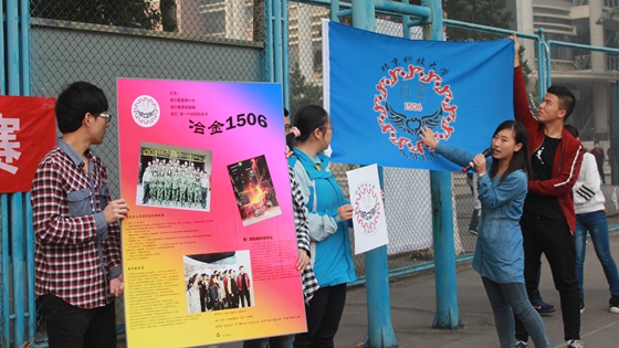 班旗班徽书画五彩青春,个人才干点亮集体风采。实施新生融合教育和体验教育,是学院2015级本科新生教育工作方案的重要组成部分。本次活动中,本科新生各班同学相互合作,展现并进一步形成了良好的凝聚力和班级认同感。据悉,本科2015级新生各班制作的班级文化展板近期将在学院冶金生态楼一层大厅展出。
