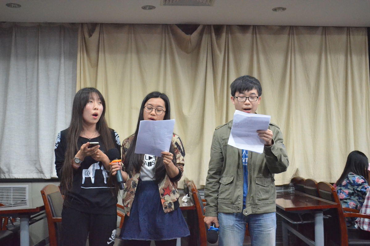 4月27日晚,继“春之声”文艺晚会节目二审工作结束后,第三次审核工作在冶金生态楼青钢报告厅顺利举行。德州游戏 团委书记杨志伟老师,学生会主席谢宏亮,院学生会副主席郭竞泽,及相关部门负责人对各节目组加以改进的表演节目进行审核。
