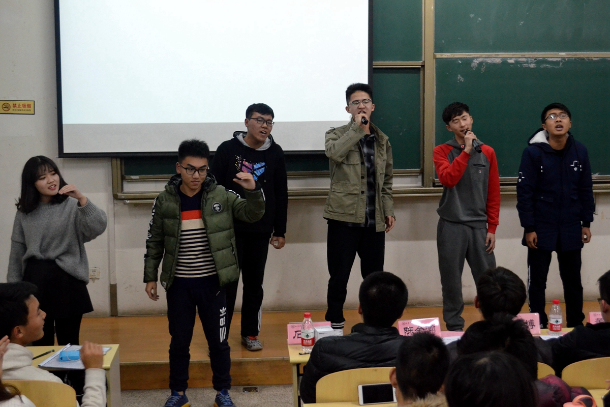 接下来是成果汇报环节,冶院16级的新生们再次充分调动艺术细胞,给观众们展现了一个个精彩的节目。动人心弦的诗朗诵,音韵铿锵的引吭高歌,还有精心准备的手语。同学们不仅把节目表演得淋漓尽致,还把班上每一个人都调动起来,完美地诠释了团结的定义,异乡求学的游子们,在这里仿佛又找到了家的温暖。