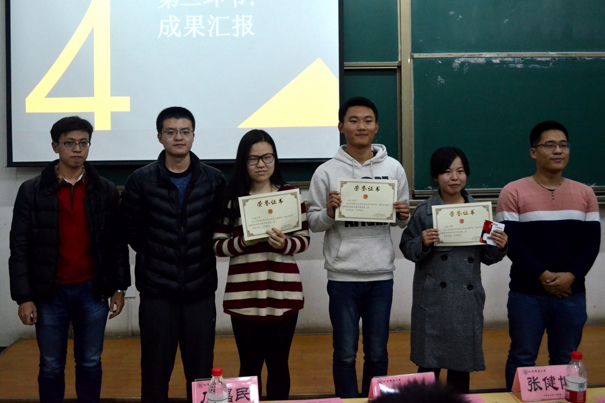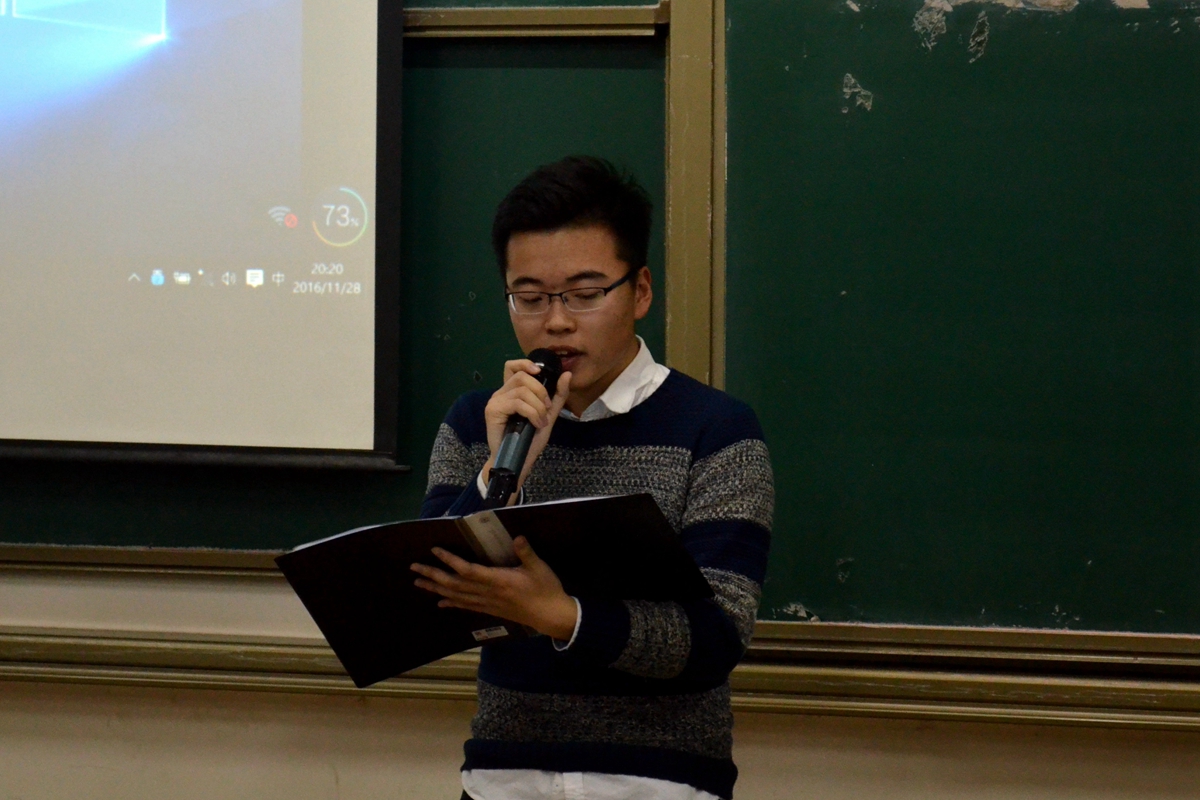 节目过后,演讲比赛的结果也新鲜出炉,冶金1603王培,冶金1601刘昊,冶金1603刘梦实分别夺得冠亚季军,由小班主任为他们颁奖。