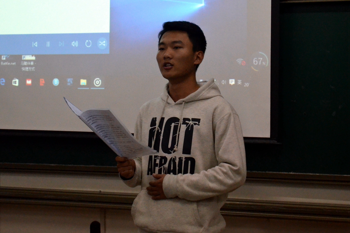 同学们时而慷慨激昂,响彻云霄时而低声诉说,余音绕梁的演讲将个人的梦,大学的梦和中国梦紧密结合,利用主题团会的一次机会,展示自己,挑战自己,把对初心,本心,真心和中国梦的理解与同学们分享,激励同学们积极思考自己的梦想并为之奋斗。