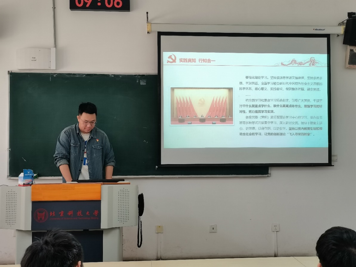 自主题教育启动以来,冶本20党支部坚决贯彻落实《北京科技大学深入开展学习贯彻习近平新时代中国特色社会主义思想主题教育实施方案》以及学院党委关于主题教育的有关部署,通过“三会一课”、读书分享等形式,开展了丰富多样的理论学习和实践调查,努力把习近平新时代中国特色社会主义思想转化为坚定理想信念、锤炼党性修养、指导自身实践的强大力量。