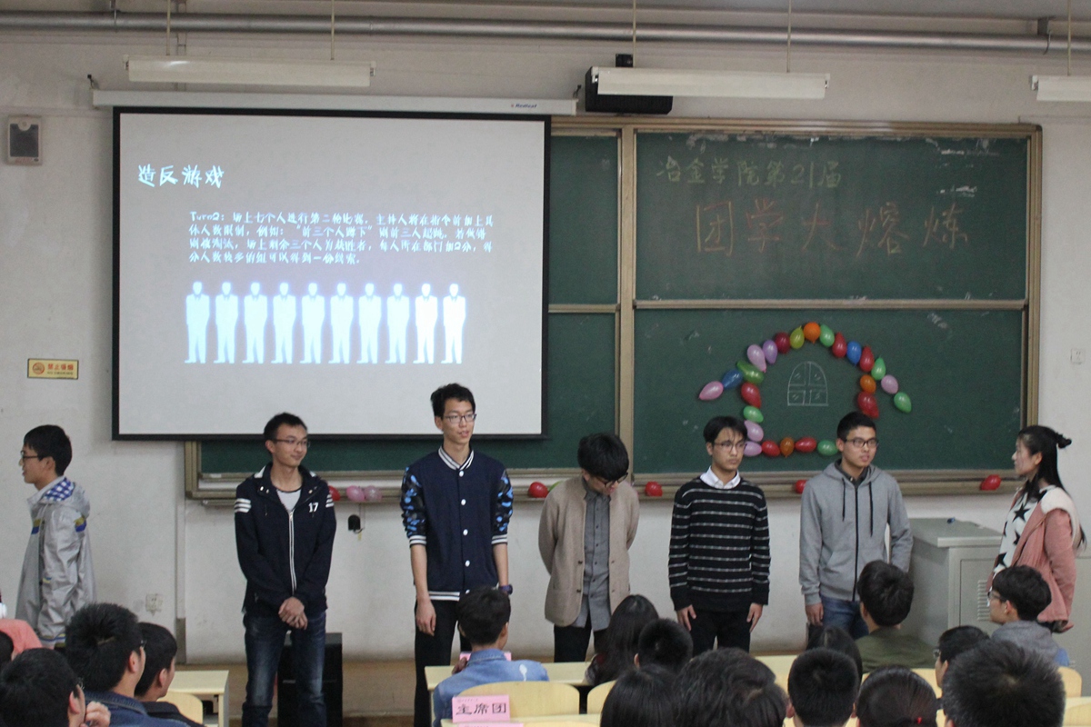 精彩的视频之后,游戏环节更让人跃跃欲试。各类精彩的游戏拉近了大家的距离,在欢声笑语中,德州游戏 团学大熔炼圆满结束。大家一起在冶金楼合影。本次活动为新老部员、主席以及各部门之间架起了一座友谊大桥,为以后工作的顺利展开和各部门的协调合作打下了良好基础。