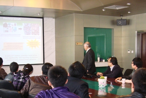 2011年10月24日,佐贺大学理工学部应用化学系主任、日本国离子交换与溶剂萃取学会会长井上胜利教授,在冶金楼318会议室作了一场关于如何利用生物废弃物回收电子废物中黄金的学术报告,报告结束后井上胜利教授对我院师生提出的一些问题进行了耐心的解答。