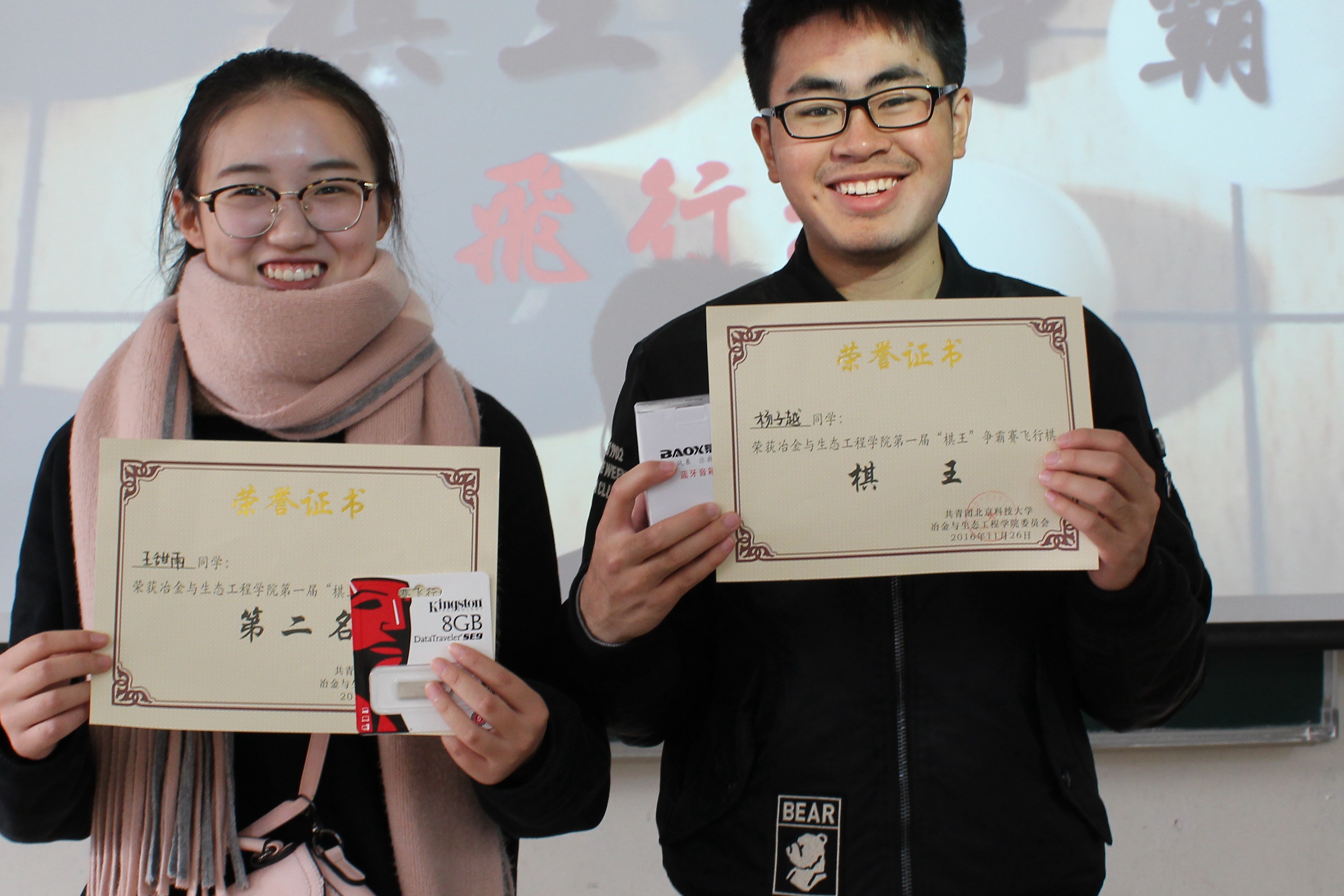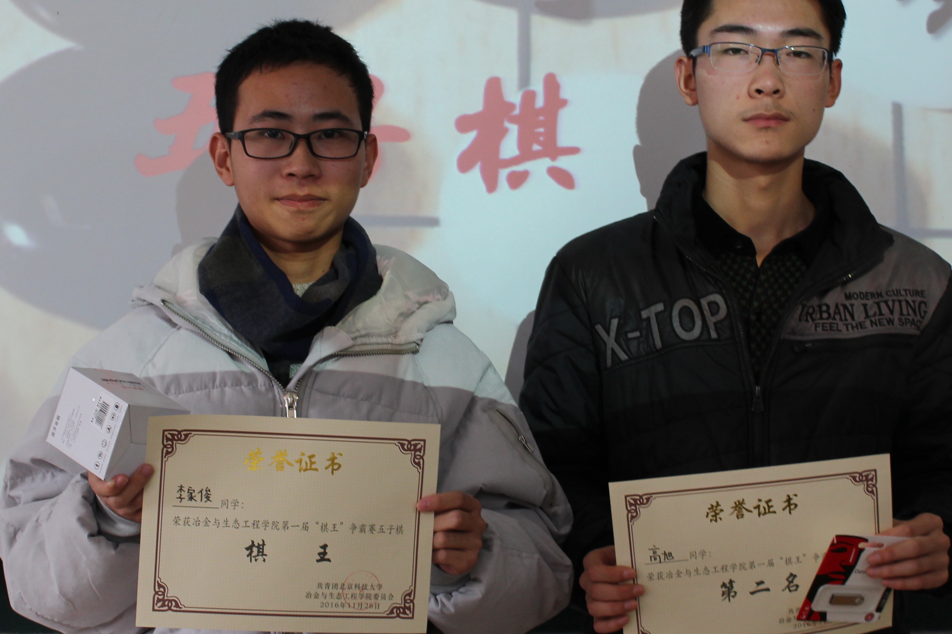 最终来自冶金1503班的李泽友获得象棋“棋王”称号,来自冶金1604班的高雪峰获得第二名;来自冶金1502班的李家俊获得五子棋“棋王”称号,来自冶金1606班的高旭获得第二名;来自冶金1605班的杨子越获得飞行棋“棋王”称号,来自冶金1502班的王甜雨获得第二名。